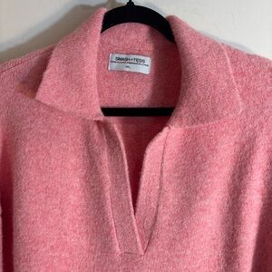 SMASH + TESS Sz M-L Collared Knit Sweater Dress Midi Length Long Sleeve Pink. Cozy and stylish pink knit dress perfect for any occasion. Soft fabric ensures comfort all day long. Athleisure. Fits like an extra large.