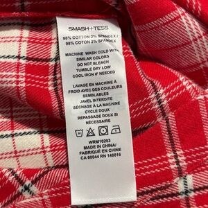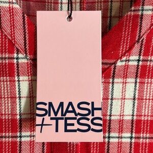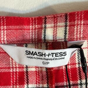 SMASH + TESS Sz S Oversized Red Plaid Long-Sleeve Flannel Ruffle Jumpsuit NEW
