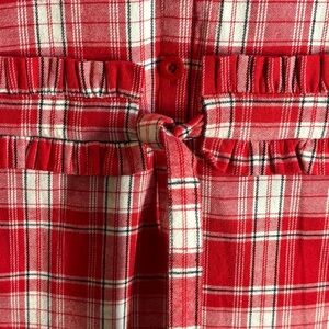 Oversized Red Plaid Long-Sleeve Flannel Ruffle Jumpsuit Romper NEW