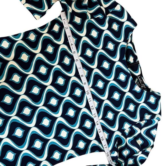 SMASHED LEMON Blue Geo Print Long Sleeve Boat Neck Knee Length Dress 8