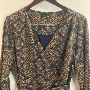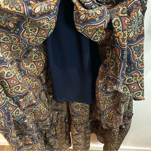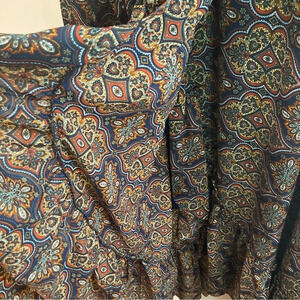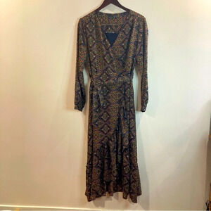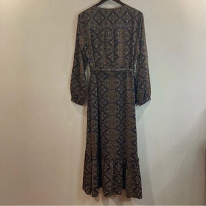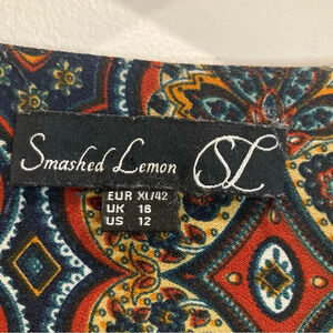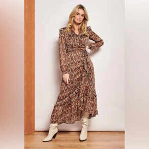 SMASHED LEMON Sz 12 Jill Riffled Faux Wrap Top Lined Sheer Sleeves Maxi Dress. Bohemian cottagecore flowy Western vibe dress. Wrap skirt that moves with you. Modest and lovely. Side zipper closure.
