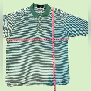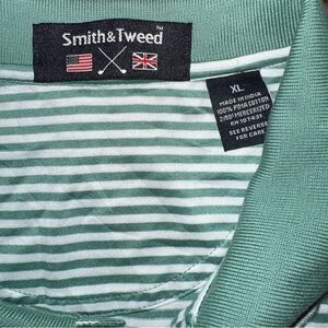 Men’s Smith & Tweed golf polo in green stripe.