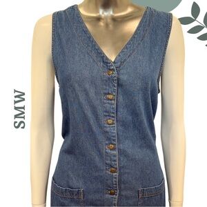 SMW Style My Way Sleeveless Button-Front Denim Dress – Size Medium
