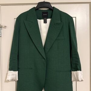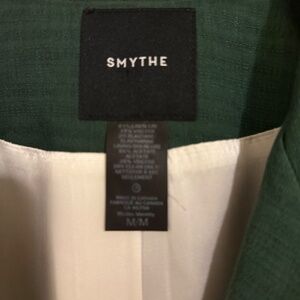 SMYTHE green 90’s blazer with white satin roll up contrast cuffs! Size Medium. Similar to sz 6-8. Like new condition!