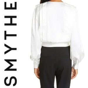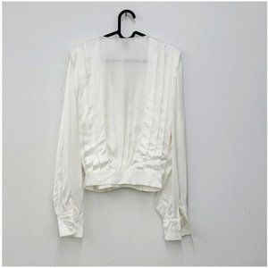 SMYTHE Pleated Wrap Front Long Sleeve Blouse, Size Medium - Ivory