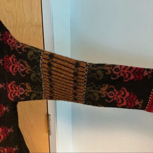 SNOWFLAKE TM 100% Wool Jacquard Brocade Detail Norse Wear Cardigan Sweater Sz XL. Gorgeous. Warm. With pockets and side slit.