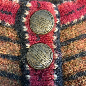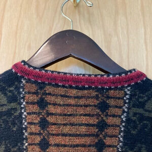 SNOWFLAKE TM Sz XL 100% Wool Jacquard Brocade Detail Cardigan Sweater