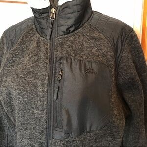 Cozy and warm full zip fleece. Minimally worn. Excellent condition. Faux shearling around inside of collar, chest zipper pocket, front pockets for hands.