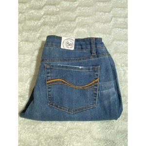 SO Brand Kohls Size 11 Capri Cropped Distressed Straight Leg Jeans Mid Rise 33x24 measured