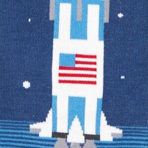 Space travel, the ultimate road trip (where you don't need any roads). Who didn't want to be some sort of space traveler when they were young, be it astronaut or space cowboy? This dynamic crew sock design starts at your toes and blasts off from your foot. The combed cotton threads are certified by OEKO-TEX® Standard 100, which means we leave out harmful chemicals to keep your skin safe and happy.