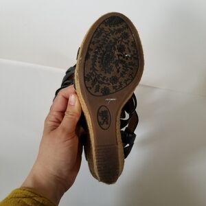 SOFFT Black Leather Heeled Wedge Espadrille Sandals Size 9.5
