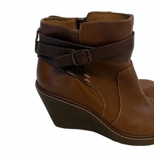 SOFFT Brown Bootie Size 8 Women Leather Wedge Chic Winter Glam Stylish Neutral