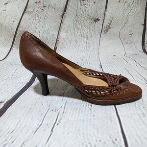 SOFFT Brown Open Weave High Heels 8.5 peep toe cushion insoles NWOB