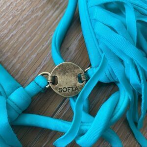 SOFIA By Vix-Teal Fringe Top and Side Tie Bottoms Bikini (Size:Small)