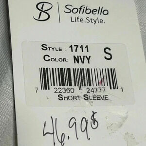 SOFIBELLA women blue activewear top, UV, mesh. Fitted ,crew neck , cap sleeves