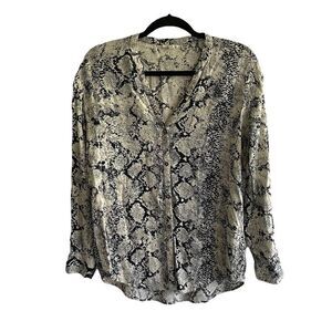 SOFT JOIE Snake Print Button Blouse Blue Grey Cream XS