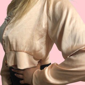 This flashy light pink cropped bomber is the perfect piece to liven up any outfit and make it more special and unique 👛