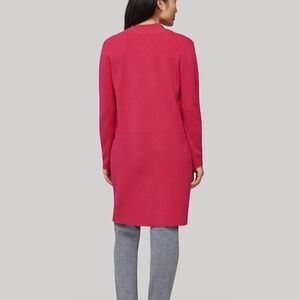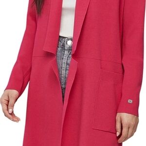 The BENELA by SOIA & KYO is a fashion-forward luxe coatigan with lapels and a ribbed back stand collar. It’s made with Lenzing™ Ecovero™ Viscose fibers derived from sustainable wood and pulp. Wear it indoors or outdoors.