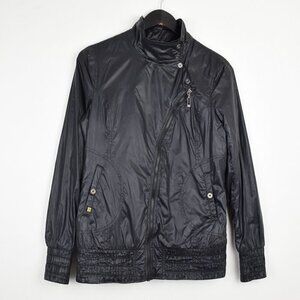 SOIA & KYO Biker Nylon Lightweight Asymmetrical Full Zip Jacket in Black
