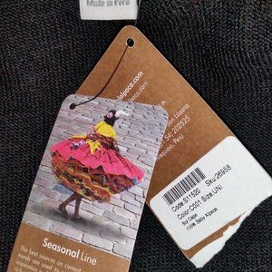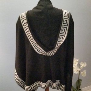 SOL baby alpaca hooded cape with traditional geometric trim. Made in Peru 100% baby alpaca. One size Unisex NWT