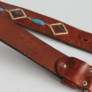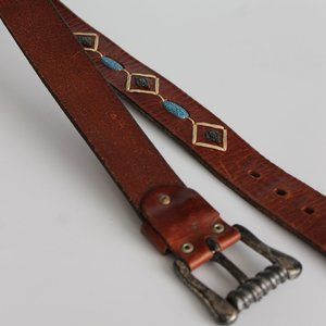 SOLD / 1990s Vintage Turquoise Stone Italian Leather Belt ~ 34"