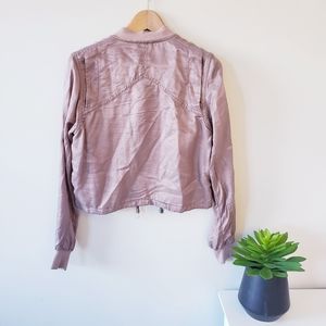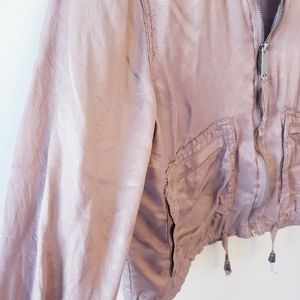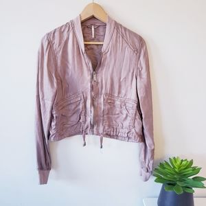 Fit is true to size. This jacket is short and meant to sit just at or slightly above the hips.
