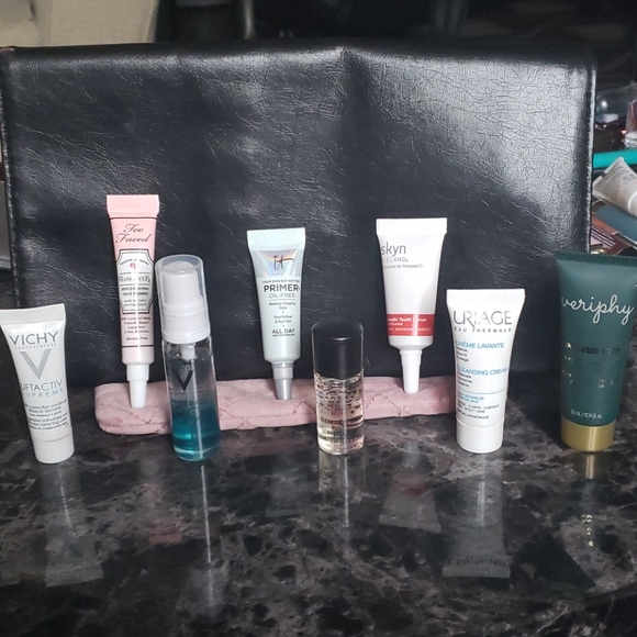 Sample and deluxe samples for: Veriphy, Uriage, Skyn, It cosmetics, MAC, Vichy, Too Faced. Primers, moisturizers, face oil, makeup remover. All unused.