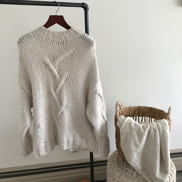 Beautiful chunky knit sweater from Zara! For me, it was the perfect oversized fit & looked so cute with a black lace bralette underneath. Perfect for layering.