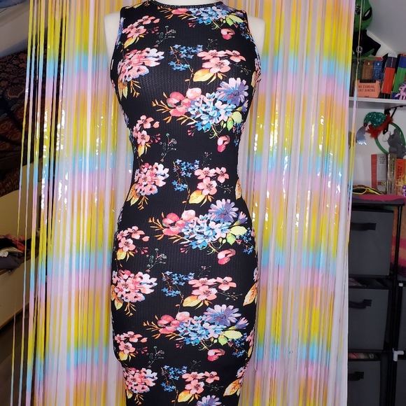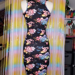 Floral body con dress with racer back. Knee length. Sadly does not fit me any more
