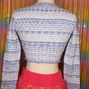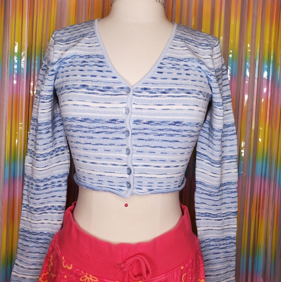 Sparkly blue button-up cropped cardigan. Total Y2K vibes.