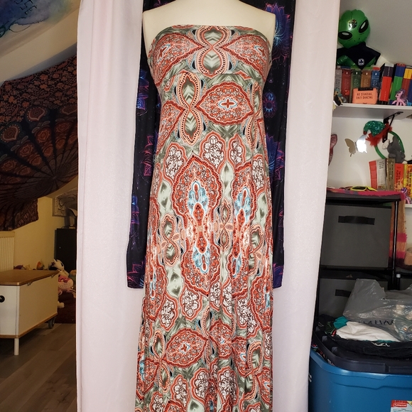 Can be worn as a strapless dress or a shirt. Size small/medium