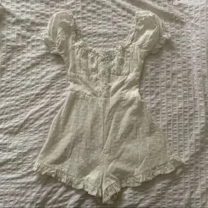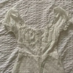 cute embroidered ditsy floral pattern all around, and ruffle details :)