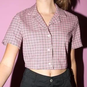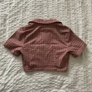 a plaid collared short sleeve crop top that buttons up :)