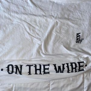 🕊 Shirt is very comfortable and comes with gothic print on both sleeves stating “Off The Wall” and “On The Wire.” It also comes with a cute addition that is a pigeon on the VANS symbol.