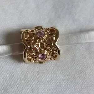 Beautiful piece of retired Pandora. 14k gold with real pink sapphire stones. I have 3 available