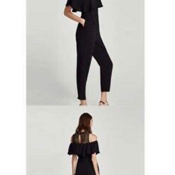 zara black jumpsuit full length with cold shoulder with pocket