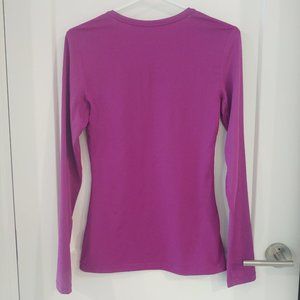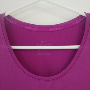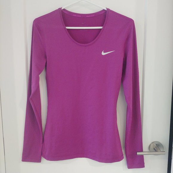 Women's Nike Pro long sleeve, dri-fit top. Only worn a handful of times, so like new condition (other than inner fabric tag removed). Back of top is subtly aerated, as shown in pics. Nice purple/magenta colour. Size medium.
