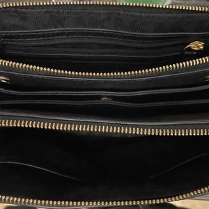 Black leather. Very spacious 3 compartments. Very little use. Non smoking.