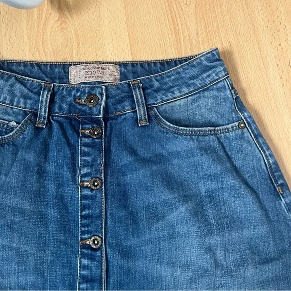 Cutest front button denim skirt - vintage Zara Denim tag on the back too, excellent worn condition - lovely distressed buttons/wash/bottom details, comes with front and back pockets ! Size small; please DM for any other details xx