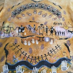 1999 tribal native petroglyph t shirt. Great condition beautiful artwork by Ginny Hogan. Everything is curated, inspected, hand washed, and finally steamed.