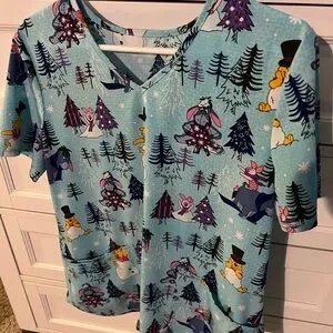 Stay comfortable and stylish with this Disney Eeyore print scrub top. Featuring a playful blue design, it's perfect for adding a touch of fun to your workwear.