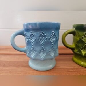3 vintage two tone anchor hocking fire king kimberly diamond pattern coffee mugs. All in great condition no chips or cracks