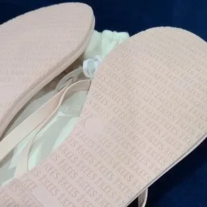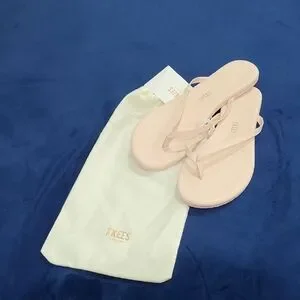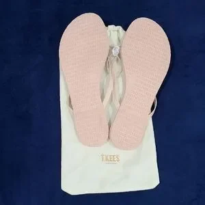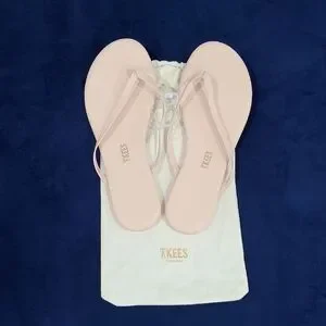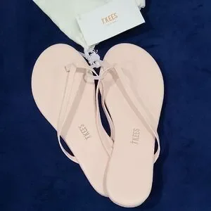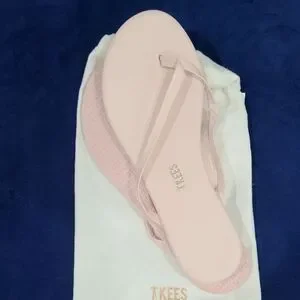 Elegant TKEES sandals. Light pink straps. Comfortable and stylish.
