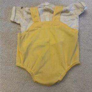 Adorable yellow baby romper featuring a cute elephant design. Perfect for a playful day out.