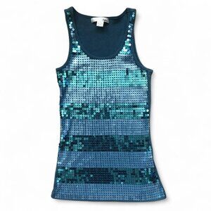 •late 00s vintage MAJORA baby aqua blue striped sequin sparkly mcbling racerback tank