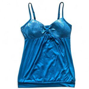 •late 00s G21 cute sexy aqua blue sequin party girl bubble hem babydoll cami tank top ⭐️🦋💙