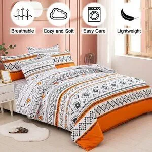Brand New Boho Burnt Orange 3 Piece Comforter Set β’ Queen Size