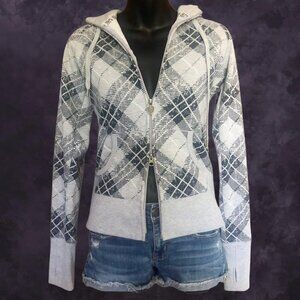 β’00s vintage URBAN HERITAGE grey argyle form fitting skater girl grunge thick waistband hoodie w/thumb holes and double zip π©ΆππΉ