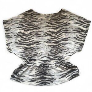 β’2010s trashy hot mom indie sleaze zebra tiger animal print oversized drapey batwing peplum blouse π