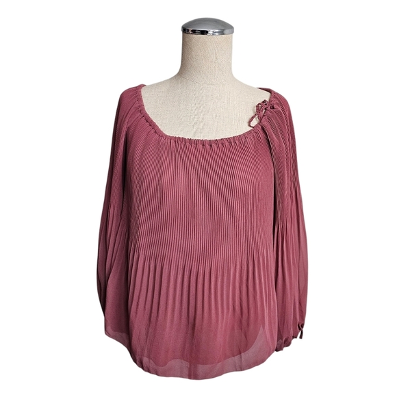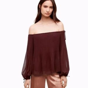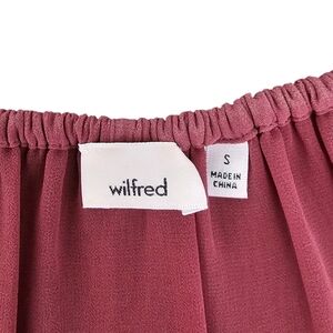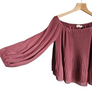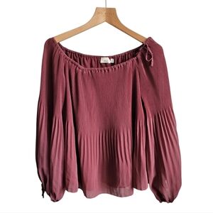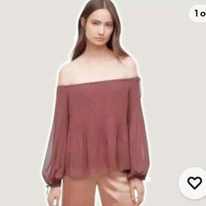 Elevate your wardrobe with this Wilfred Aritzia Talence mauve off-the-shoulder lined pleated blouse top. Perfect for casual outings or dressy occasions.